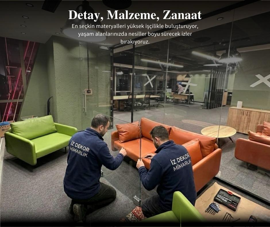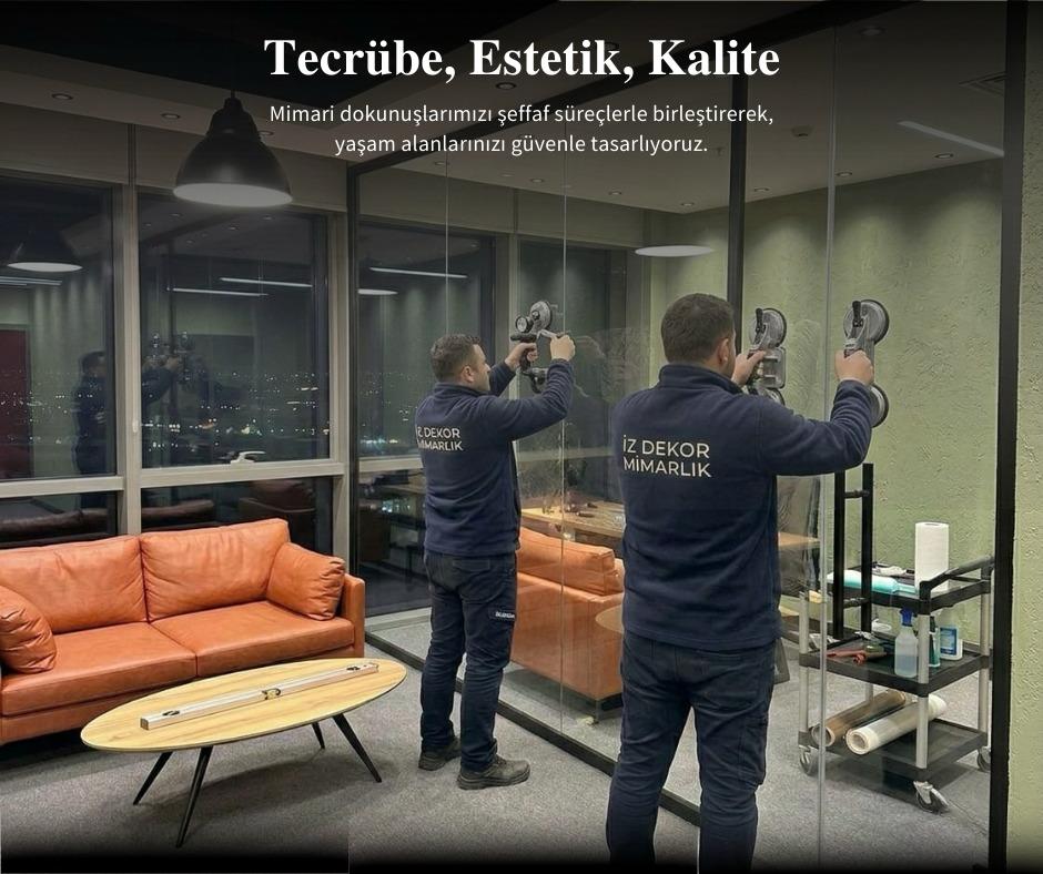 Cam ofis bölme, alçıpan uygulamaları, giyotin cam sistemleri ve anahtar teslim daire tadilatı ile mekanlar estetik ve teknik standartlarla yeniden şekillendirilir.S